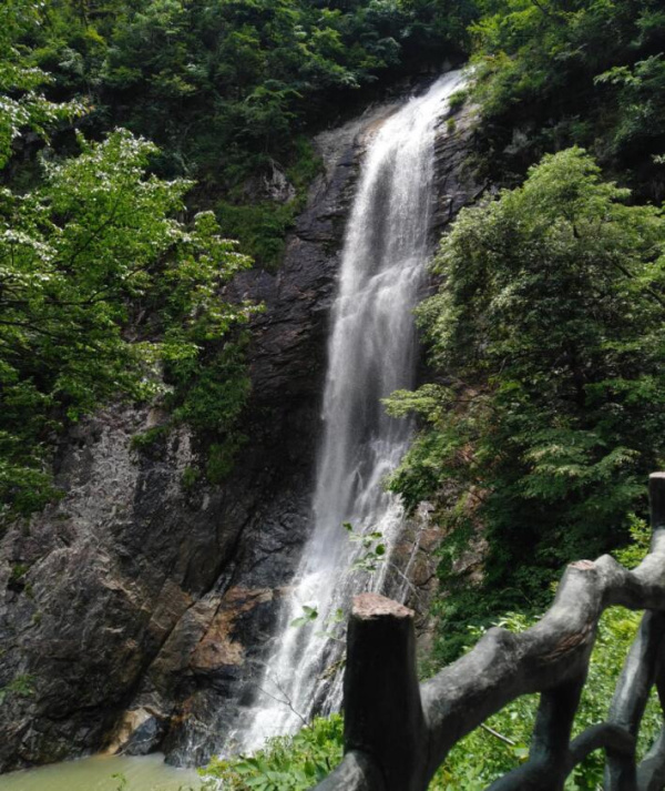 晚上睡了美美的一覺,第二天我們來到了天堂寨。那里風景如仙境,云霧繚繞,使得人有身處仙境的感覺。遠處的山峰已清淡的若隱若現(xiàn),一聲珍禽鳴叫持久而響亮地回蕩在山谷里。嘰嘰喳喳的鳥兒,悉悉索索的蟲鳴環(huán)繞耳周,攀爬在起起伏伏的山巒中,偶爾與從葉縫中鉆進來的陽光捉捉迷藏,也為旅途增添了一番別樣的情趣。大家紛紛在瀑布前面合影留念,用相機記錄下美好的瞬間。也許真有世外桃源,這就是天堂寨。