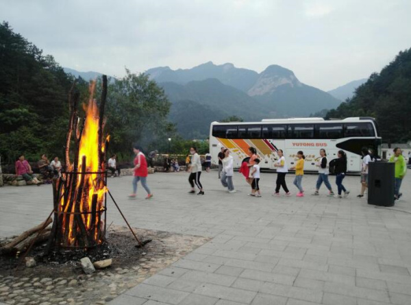 晚上大家在篝火前載歌載舞,笑談風生。將平時工作的壓力與生活的煩心時統(tǒng)統(tǒng)拋之腦后,盡情享受此刻的歡愉,使一直繃著的弦在此刻得到釋放,徹底放松。大家唱著笑著玩著,歌聲在山間來來回回,此起彼伏的回蕩著。
