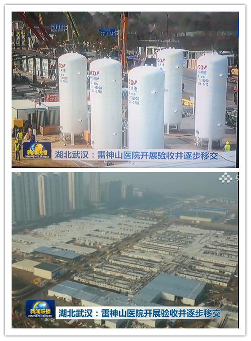 2月7日《中央新聞聯(lián)播》播出了《湖北武漢:雷神山醫(yī)院開展驗收并逐步移交》的消息。雷神山醫(yī)院最引人矚目的是六個白色的“大罐子”,他們將承擔(dān)整個雷神山醫(yī)院的醫(yī)療用氧氣供應(yīng)。而這六個20立方米的儲罐就是河南省新鄉(xiāng)市誠德能源科技裝備有限公司制造生產(chǎn)的!