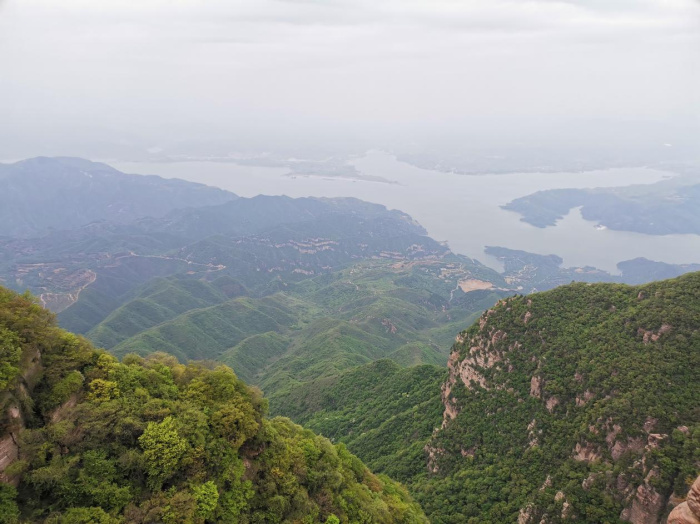 晚上睡了美美的一覺(jué),第二天我們來(lái)到了黛眉山。黛眉山位于洛陽(yáng)市新安縣境內(nèi),黛眉山作為我國(guó)唯一一座一面環(huán)山,三面環(huán)水的景區(qū),是一座天然的“沉積博物館”,西望、北瞰、東眺,偉大的母親河的綽約風(fēng)姿盡收眼底,黃河如練,綿延千里,奔流東去,進(jìn)八里峽直達(dá)小浪底。觀此奇景,你不得不為美麗中國(guó)而嘆服!